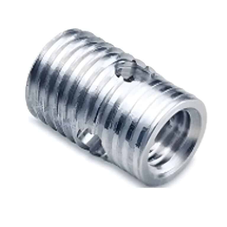 Được thiết kế với rãnh cắt dọc (cutting slot) sắc bén ở đầu dẫn. Khi lắp đặt, rãnh này hoạt động như một mũi taro tự cắt ren vào vật liệu nền. Cấu trúc rãnh tạo ra độ đàn hồi nhẹ hướng vào trong, hình thành hiệu ứng khóa vít tự nhiên giúp chống rung động mà không cần keo.