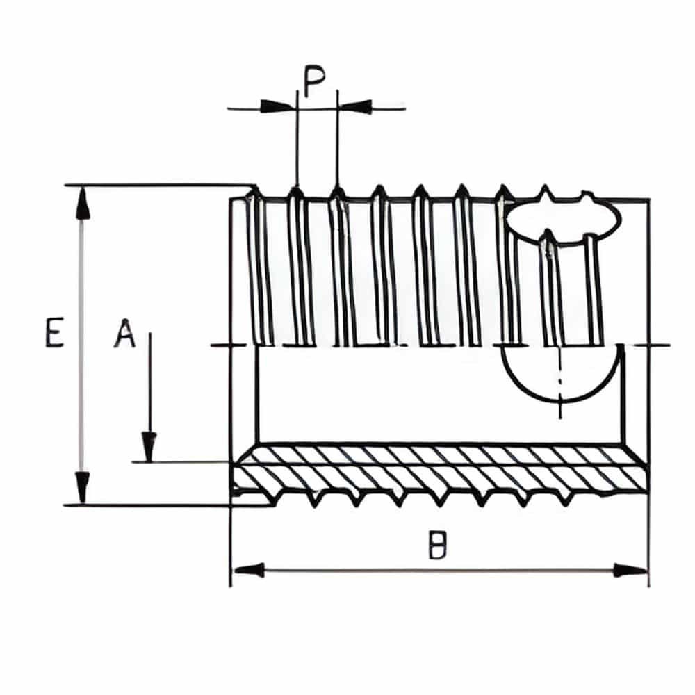| Mã sản phẩm | Ren trong (A) | Ren ngoài (E) | Bước ren (P) | Chiều dài (B) | ĐK lỗ khoan (L) | Chiều sâu lỗ tịt tối thiểu (T) |