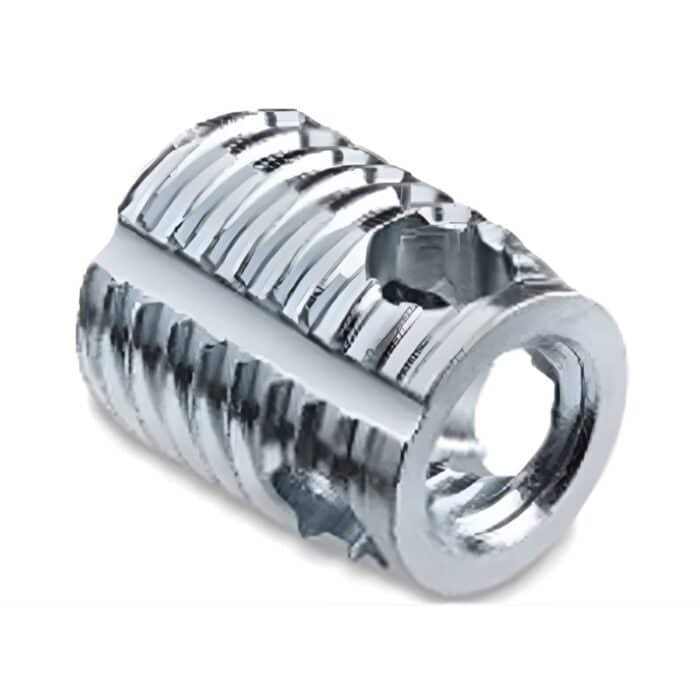 Bản thiết kế ngắn của dòng SBKI (mã chuẩn 307 3). Sản phẩm hội tụ 3 ưu điểm kỹ thuật cơ học: Đầu mũ (mặt bích) cung cấp điểm tỳ giúp gia tăng lực chống nhổ rứt, thân có 3 lỗ cắt phân tán lực hiệu quả khi taro vào vật liệu cứng, và lỗ lục giác chìm giúp rút ngắn tối đa thời gian thi công. Thiết kế thân ngắn đặc biệt được tính toán riêng cho các vị trí lắp đặt có phôi nền mỏng. Cơ cấu lục giác cũng cho phép tháo gỡ linh kiện dễ dàng trước quy trình tái chế.