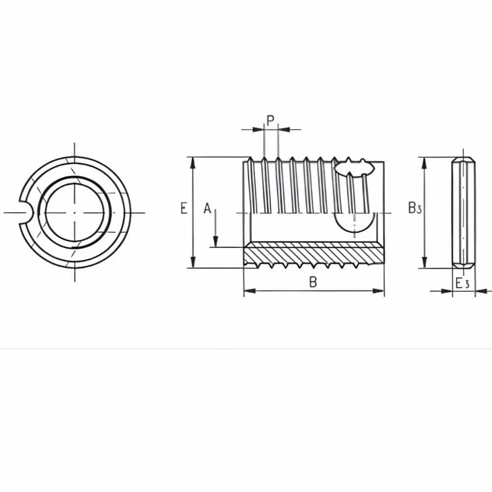 Có rãnh khuyết an toàn (safety groove) trên mặt bích. Dùng kèm chốt đóng (notched stud) để khóa chết bạc ren vào vật liệu nền.